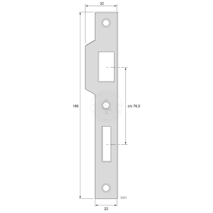 Slutbleck 5221 med raka hörn för innerdörrlås mässing