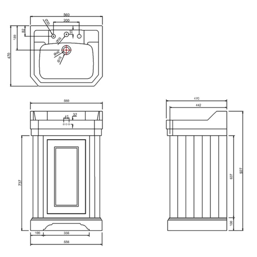 Badrumskommod med skåp samt porslinshandfat 56 cm