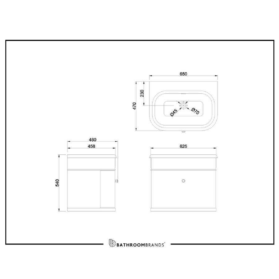Chalfont badrumsmöbel med enkelt tvättställ (65 x 48 cm)