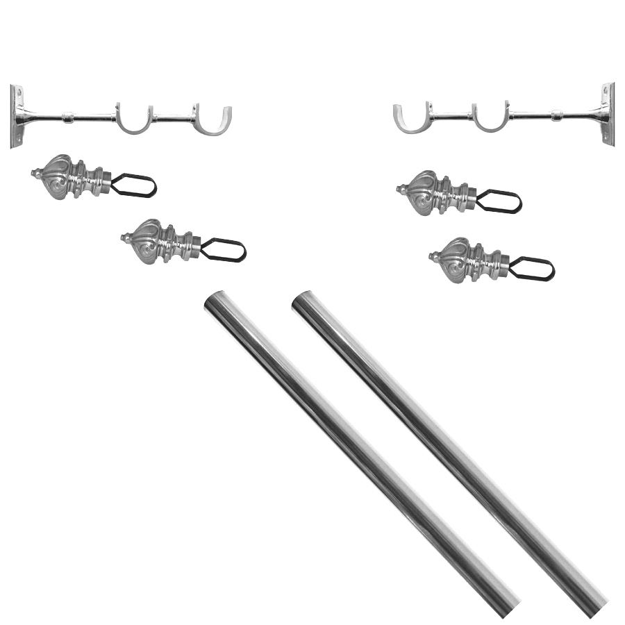 Dubbel Gardinstång (1 meter) Odessa 1890 med hållare & ändknoppar i nickel
