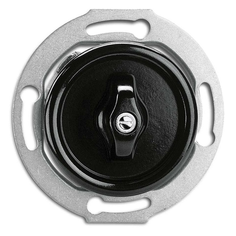 Vridströmbrytare svart bakelit trapp rund ram (infällt montage)