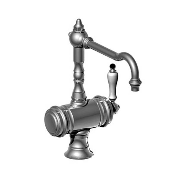Taverne köksblandare 01.180 från Franska Horus. Köksblandaren har en modern funktion med sitt ettgreppsreglage medan designen i övrigt är klassisk. Vita detaljer på blandaren är av äkta porslin och pipen är vridbar.