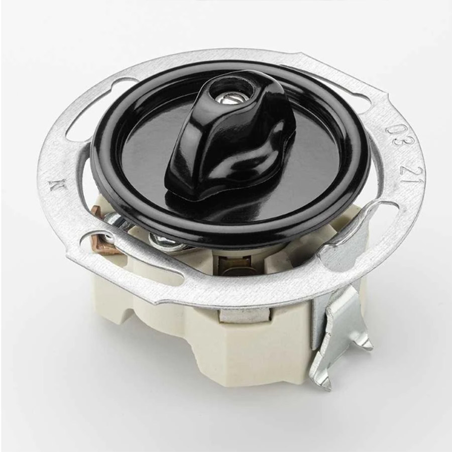 Vridströmbrytare svart bakelit kron rund ram (infällt montage)