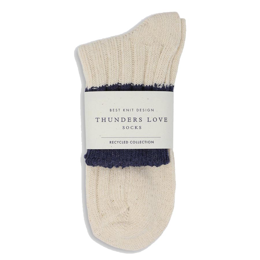 Socks Short White & Blue (strumpor i återvunnen bomull) 39-45