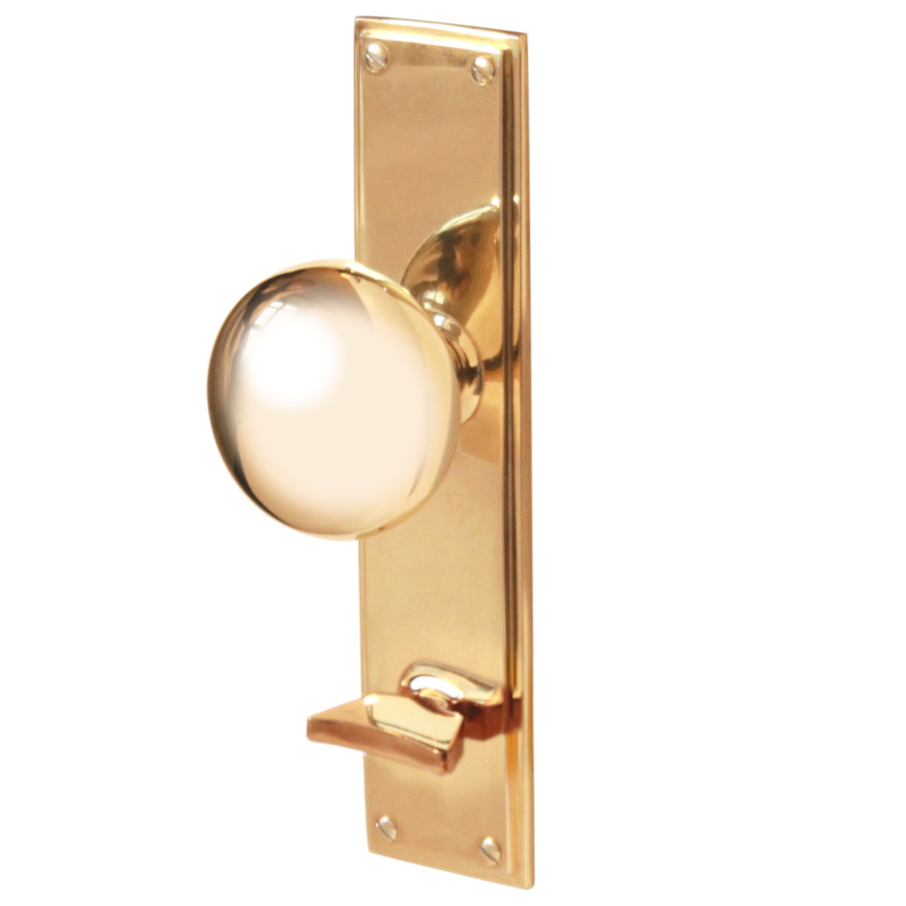 Låsfabriks dörrvred 880 med långskylt Vasaplatsen mässing
