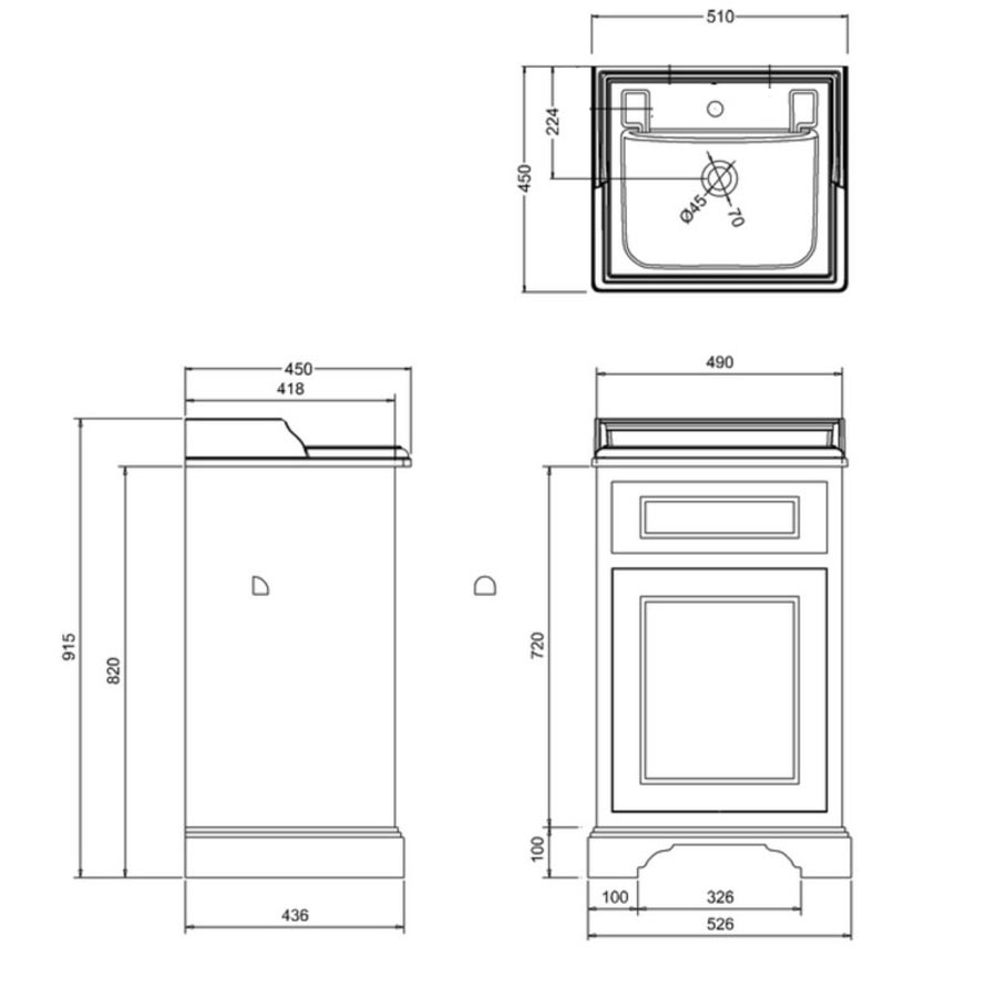 Badrumskommod med skåp 50 x 45 cm samt porslinshandfat