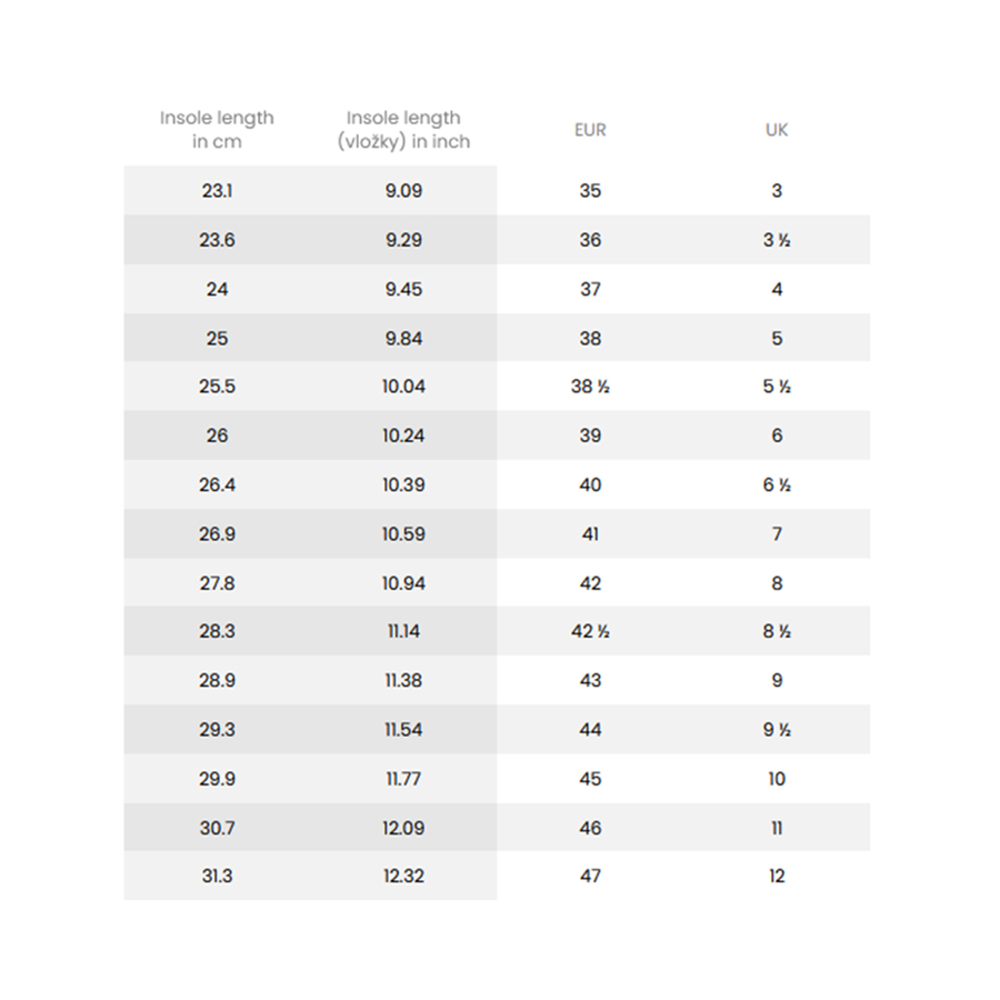 För storlekstabell, se sista bilden i bildspelet. De här skorna finns i storlek 37-46 och passar både dam och herr.