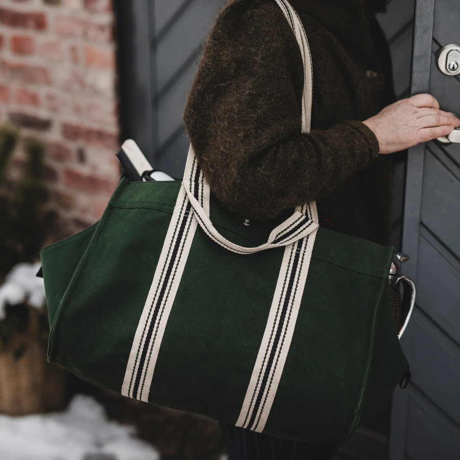 Bergslagsväskan – den mångsidiga vedväskan är en slitstark väska i kraftig canvas, designad för att hålla över tid. Den förstärkta konstruktionen gör att väskan står av sig själv, och tillsammans med den smart nedsänkta sidan blir det enkelt att lägga i och ta ur saker utan att något ramlar ut. Formen håller samtidigt allt på plats när du förflyttar dig.