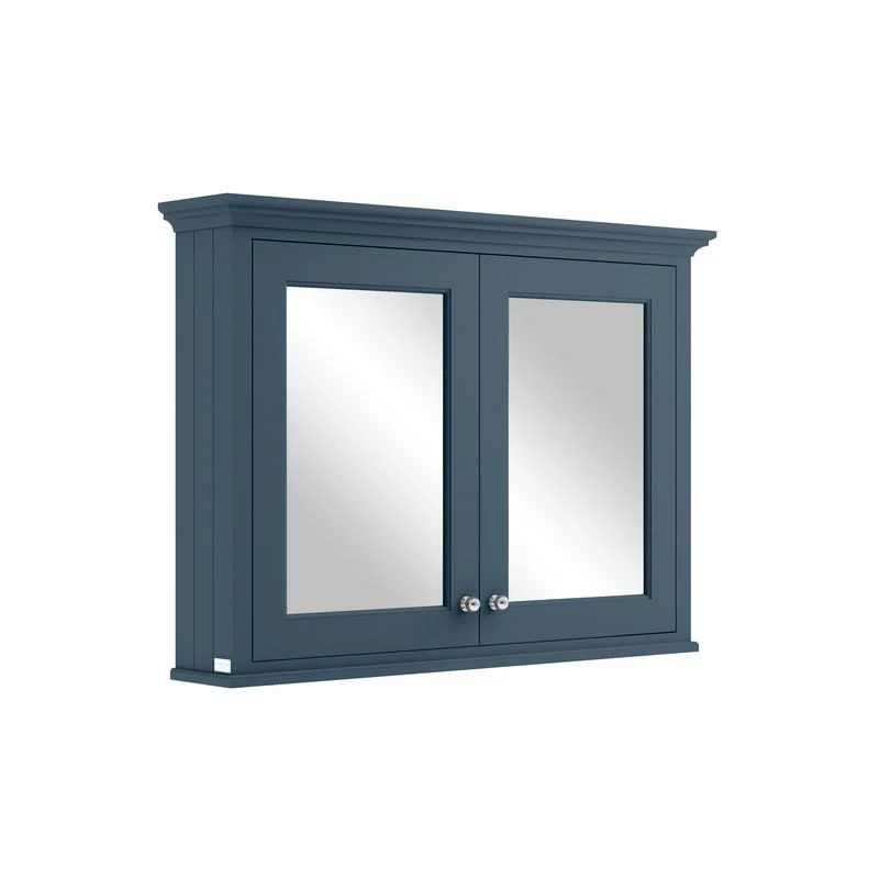 Bayswater vägghängande spegelskåp ca 105 cm brett som finns i flera olika färger. Skåpet finns i färgerna pointing white (lite bruten vit), plummett grey, stiffkey blue och matt svart. Ett set kromade dörrhandtag medföljer.